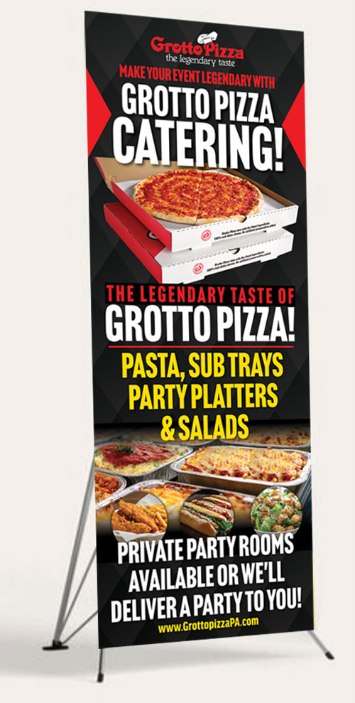 X-Banner Design (24″x72″) for Grotto Pizza Restaurants. Stand-up Banner creation to promote Grotto’s catering side.