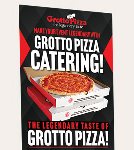 X-Banner Design (24″x72″) for Grotto Pizza Restaurants. Stand-up Banner creation to promote Grotto’s catering side.